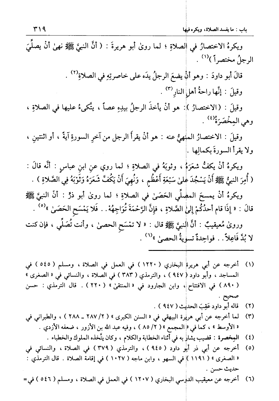 ويكره الاختصار في الصلاة؛ لما روى أبو هريرة: «أن النبي - صَلَّى اللَّهُ عَلَيْهِ وَسَلَّمَ - نهى أن يصلي الرجل مختصرًا» .
