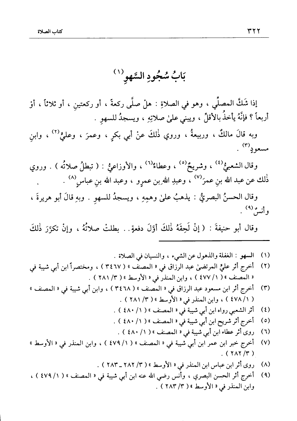 وقال الشعبي، وشريح، وعطاء والأوزاعي: (تبطل صلاته) . وروي ذلك عن عبد الله بن عمر، وعبد الله بن عمرو، وعبد الله بن عباس.