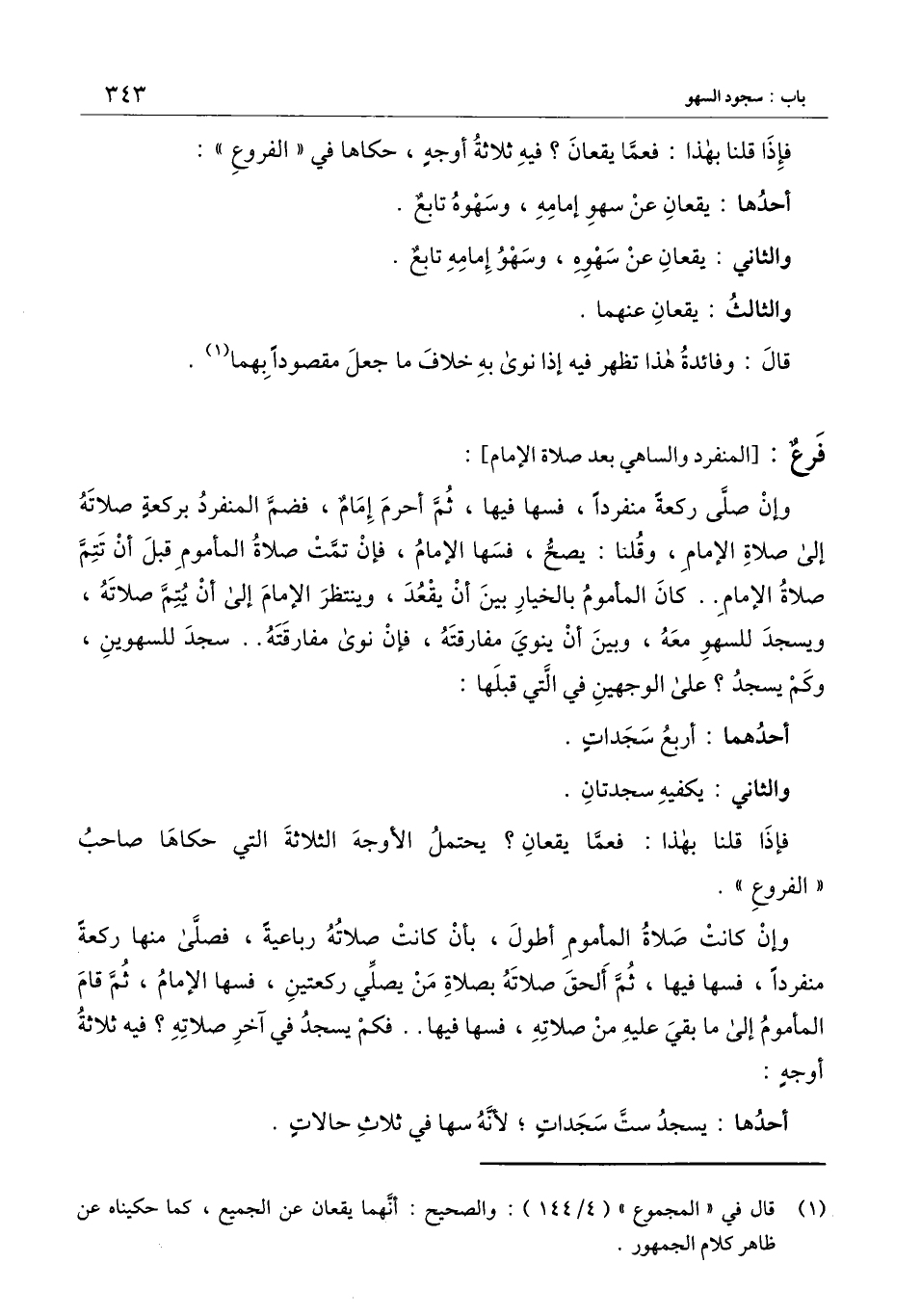 [فرع المنفرد والساهي بعد صلاة الإمام]