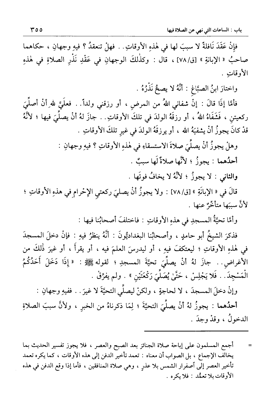 فإن عقد نافلة لا سبب لها في هذه الأوقات. . فهل تنعقد؟ فيه وجهان، حكاهما صاحب " الإبانة " [ق 78] : وكذلك الوجهان في عقد نذر الصلاة في هذه الأوقات.