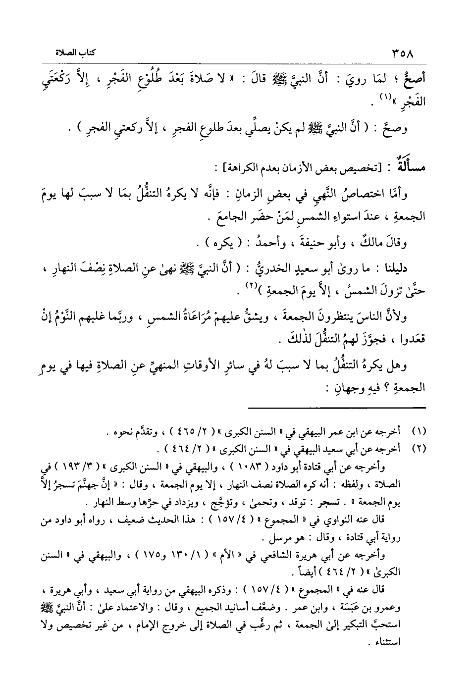 مسألة: [تخصيص بعض الأزمان بعدم الكراهية] : وأما اختصاص النهي في بعض الزمان: فإنه لا يكره التنفل بما لا سبب لها يوم الجمعة، عند استواء الشمس لمن حضر الجامع.