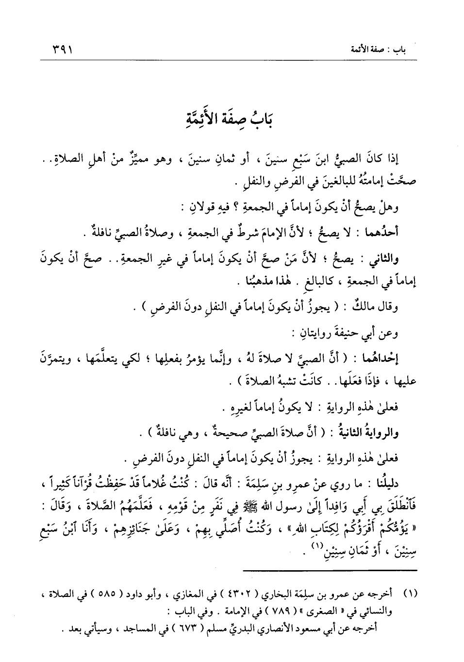 دليلنا: ما روي «عن عمرو بن سلمة: أنه قال: كنت غلامًا قد حفظت قرآنًا كثيرًا، فانطلق بي أبي وافدًا إلى رسول الله - صَلَّى اللَّهُ عَلَيْهِ وَسَلَّمَ - في نفر من قومه، فعلَّمهم الصلاة، وقال: "يؤمُّكم أقرؤكم لكتاب الله"، وكنت أُصلِّي بهم، وعلى جنائزهم، وأنا ابن سبع سنين، أو ثمان سنين» .