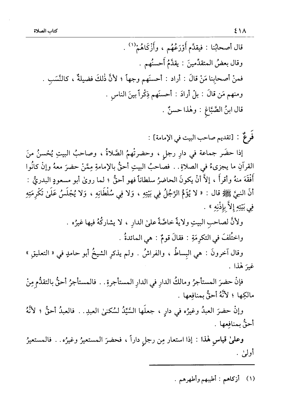 [فرع تقديم صاحب البيت في الإمامة]