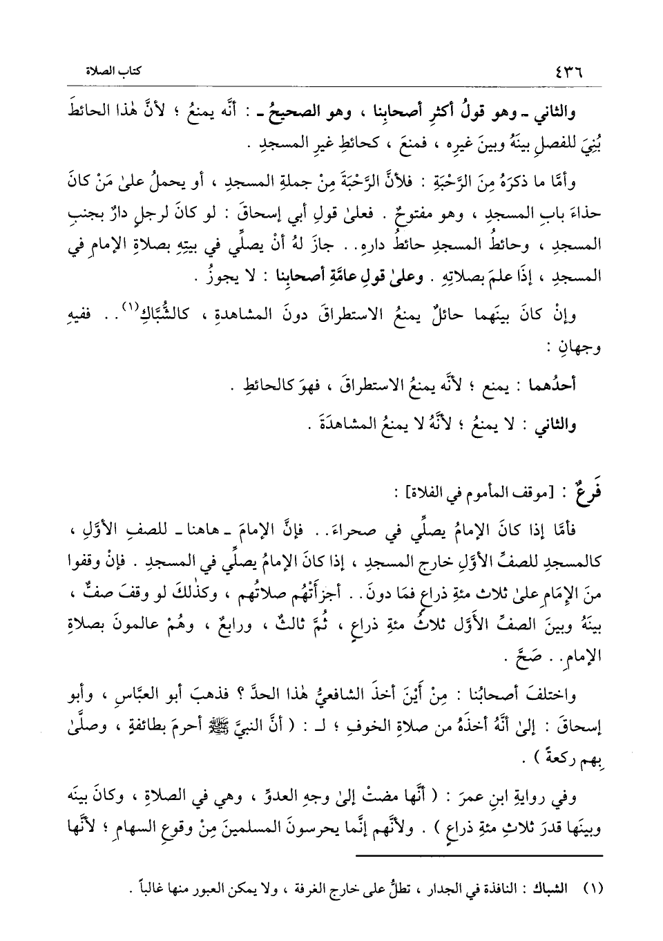 ] : فأما إذا كان الإمام يصلي في صحراء، فإن الإمام هاهنا للصف الأول، كالمسجد للصف الأول خارج المسجد، إذا كان الإمام يصلي في المسجد، فإن وقفوا من الإمام على ثلاثمائة ذراع فما دون أجزأتهم صلاتهم، وكذلك لو وقف صف، بينه وبين الصف الأول ثلاثمائة ذراع، ثم ثالث، ورابع، وهم عالمون بصلاة الإمام صح.