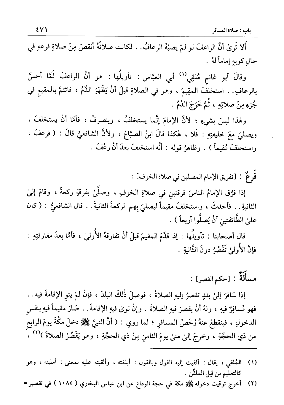 وقال أبو غانم ملقي أبي العباس: تأويلها: هو أن الراعف لما أحس بالرعاف استخلف المقيم، وهو في الصلاة قبل أن يظهر الدم، فائتم بالمقيم في جزء من صلاته، ثم خرج الدم.