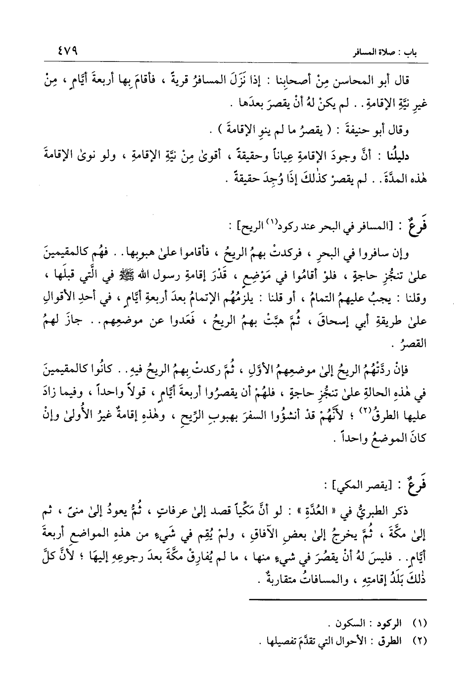 ] : ذكر الطبري في " العدة": لو أن مكيًّا قصد إلى عرفات، ثم يعود إلى منى، ثم إلى مكة، ثم يخرج إلى بعض الآفاق، ولم يقم في شيء من هذه المواضع أربعة أيام، فليس له أن يقصر في شيء منها، ما لم يفارق مكة بعد رجوعه إليها؛ لأن كل ذلك بلد إقامته، والمسافات متقاربة.