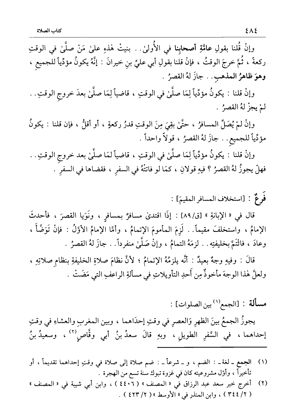 [فرع استخلاف المسافر المقيم]