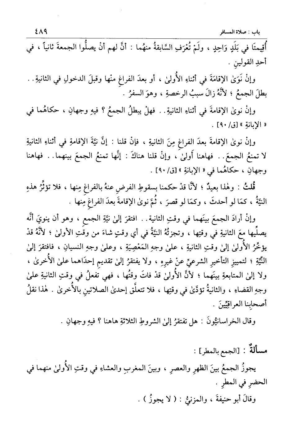 [مسألة الجمع بالمطر]