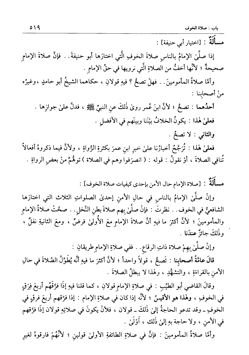 إذا صلى الإمام بالناس صلاة الخوف التي اختارها أبو حنيفة.. فإن صلاة الإمام صحيحة؛ لأنها أخف من الصلاة التي نرويها في حق الإمام.