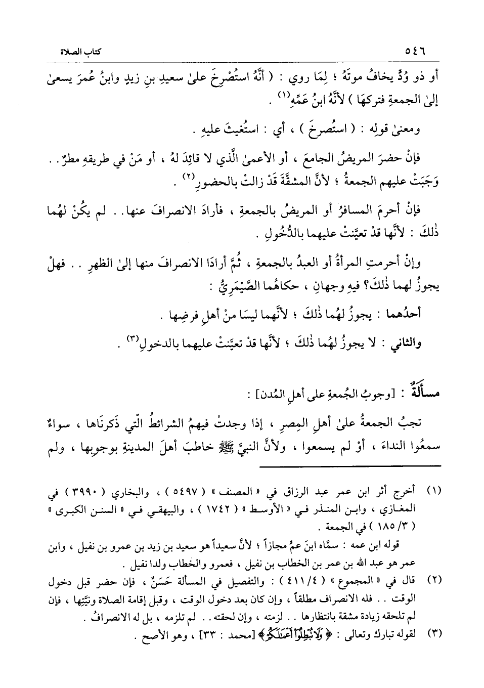 وإن أحرمت المرأة أو العبد بالجمعة، فأراد الانصراف منها إلى الظهر ... فهل يجوز لهما ذلك؟ فيه وجهان، حكاهما الصيمري:
