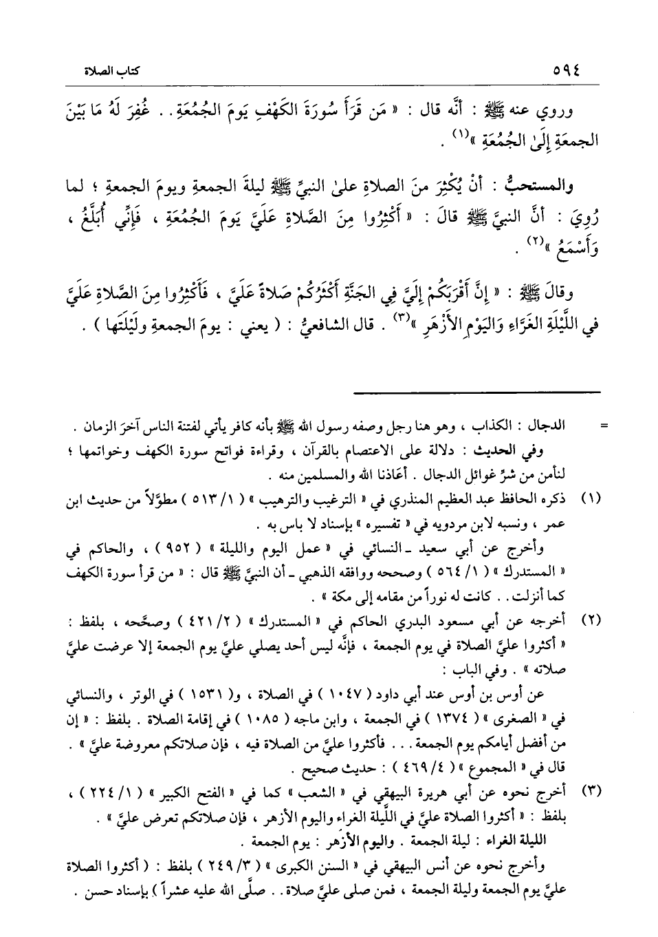 والمستحب: أن يكثر من الصلاة على النبي - صَلَّى اللَّهُ عَلَيْهِ وَسَلَّمَ - ليلة الجمعة ويوم الجمعة؛ لما روي: أن النبي - صَلَّى اللَّهُ عَلَيْهِ وَسَلَّمَ - قال: «أكثروا من الصلاة علي يوم الجمعة، فإني أبلغ، وأسمع» .