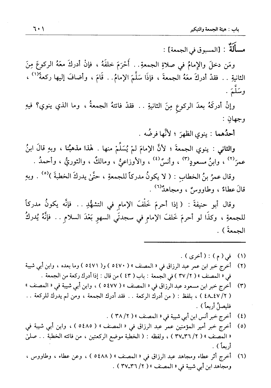 وقال عمر بن الخطاب: (لا يكون مدركًا للجمعة، حتى يدرك الخطبة) . وبه قال عطاء، وطاووس، ومجاهد.