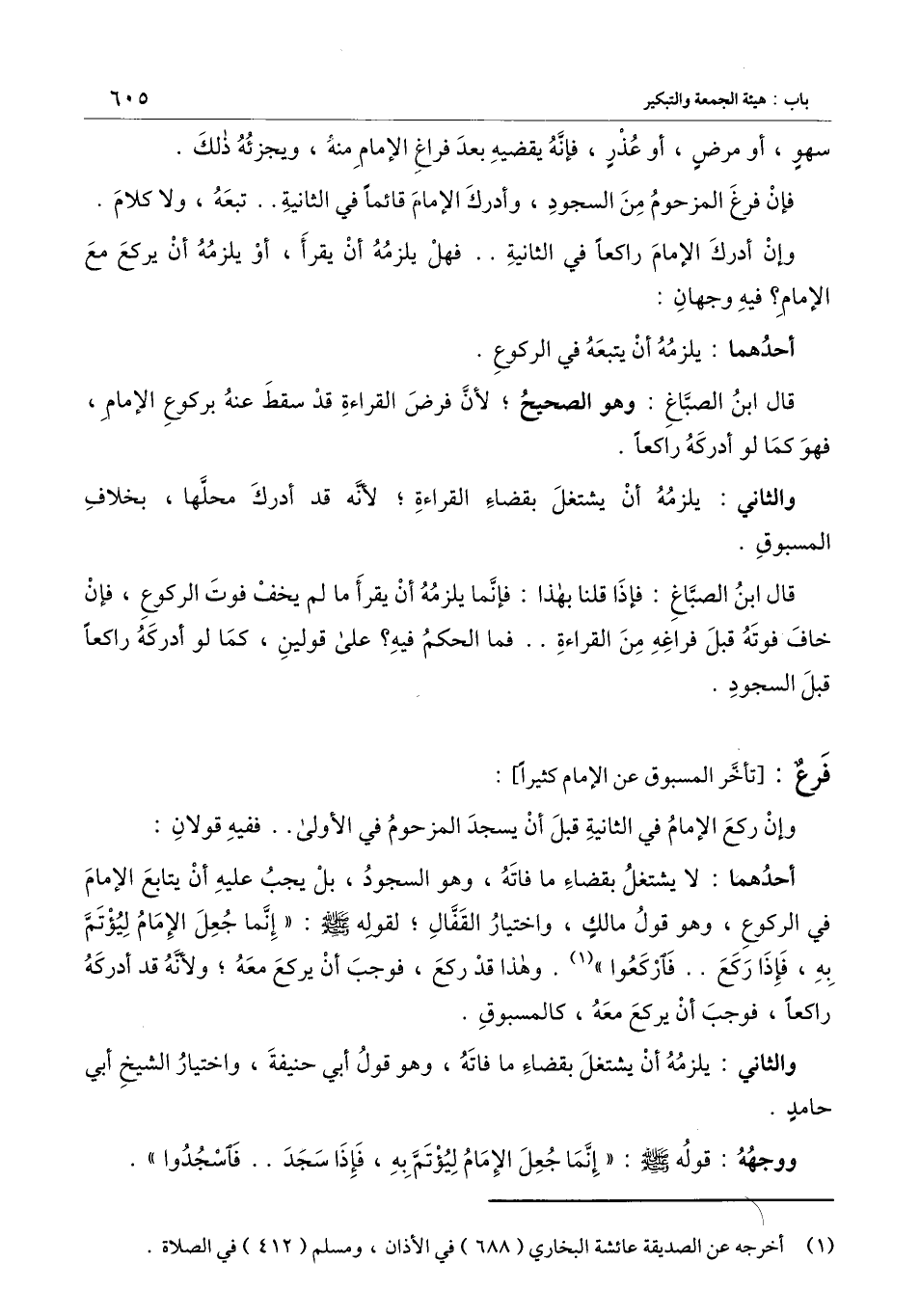 قال ابن الصباغ: وهو الصحيح؛ لأن فرض القراءة قد سقط عنه بركوع الإمام، فهو كما لو أدركه راكعًا.