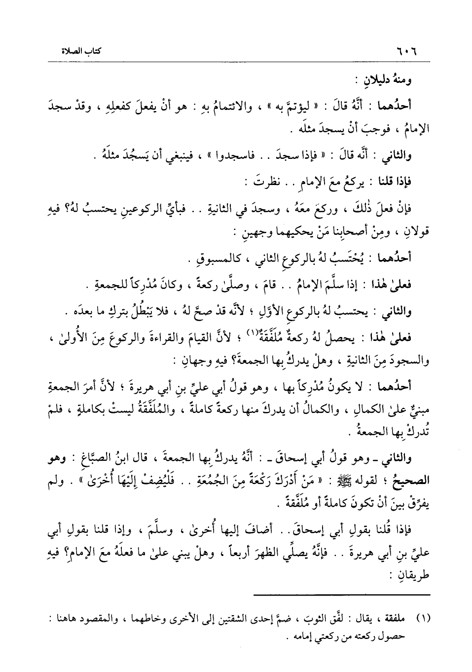 والثاني - وهو قول أبي إسحاق -: أنه يدرك بها الجمعة، قال ابن الصباغ: وهو الصحيح: لقوله - صَلَّى اللَّهُ عَلَيْهِ وَسَلَّمَ -: «من أدرك ركعة من الجمعة ... فليضف إليها أخرى» . ولم يفرق بين أن تكون كاملة أو ملفقة.