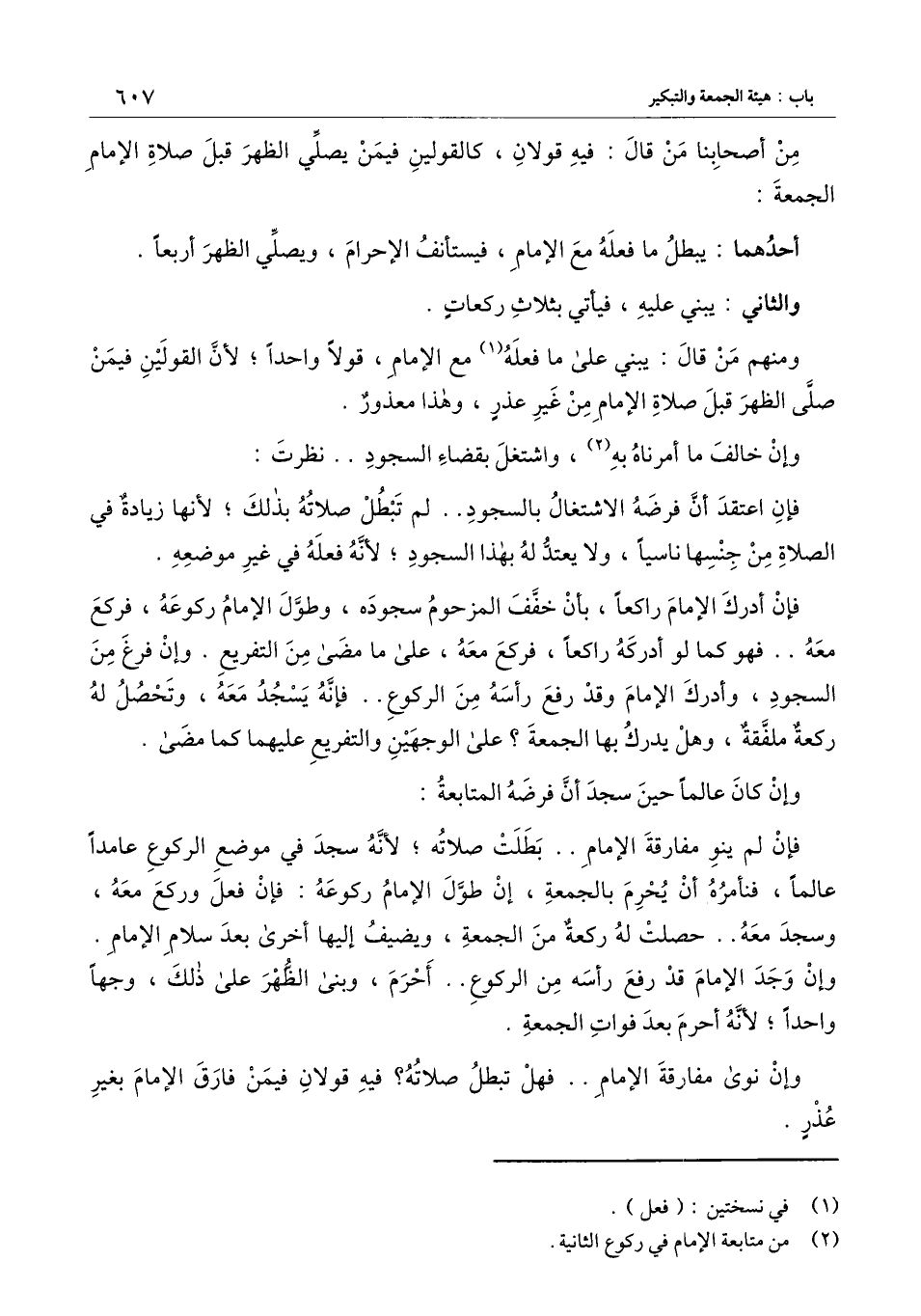 فإن لم ينو مفارقة الإمام.. بطلت صلاته؛ لأنه سجد في موضع الركوع عامدًا عالمًا، فنأمره أن يحرم بالجمعة، إن طول الإمام ركوعه: فإن فعل وركع معه، وسجد معه ... حصلت له ركعة من الجمعة، ويضيف إليها أخرى بعد سلام الإمام. وإن وجد الإمام قد رفع رأسه من الركوع
