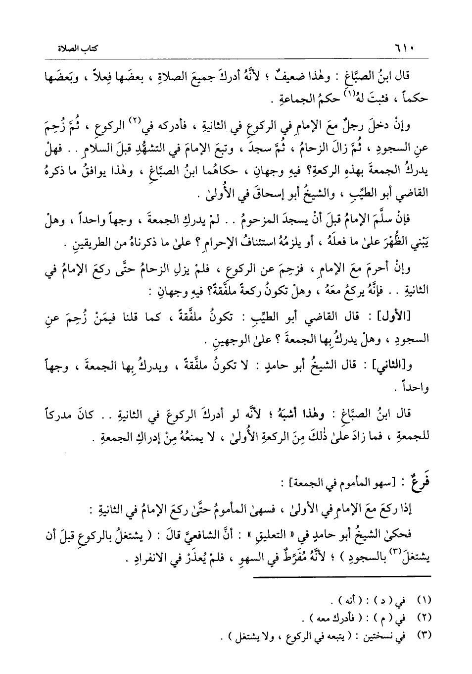 قال ابن الصباغ: وهذا أشبه؛ لأنه لو أدرك الركوع في الثانية ... كان مدركًا للجمعة، فما زاد على ذلك من الركعة الأولى، لا يمنعه من إدراك الجمعة.