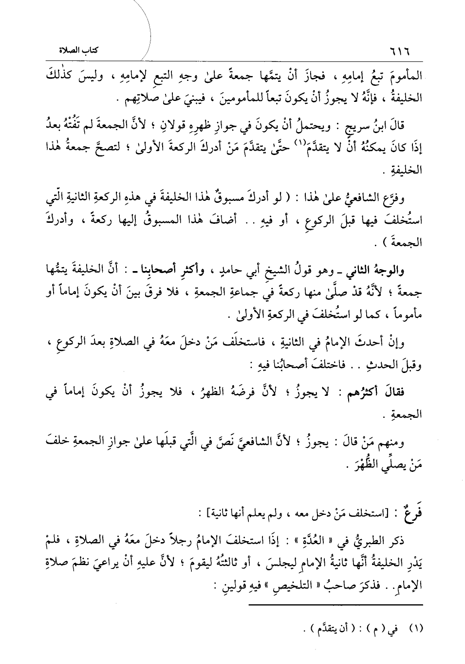 والوجه الثاني - وهو قول الشيخ أبي حامد، وأكثر أصحابنا -: أن الخليفة يتمها جمعة؛ لأنه قد صلى منها ركعة في جماعة الجمعة، فلا فرق بين أن يكون إمامًا أو مأمومًا، كما لو استخلف في الركعة الأولى.