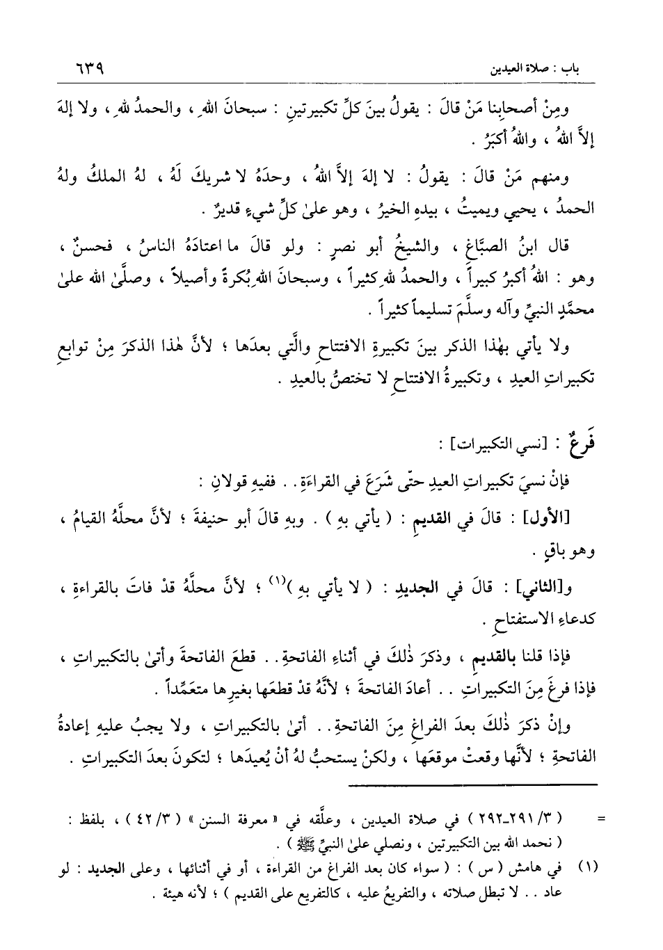 ] : فإن نسي تكبيرات العيد حتى شرع في القراءة ففيه قولان: