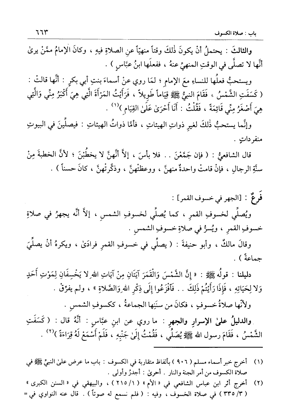 والدليل على الإسرار والجهر: ما روي عن ابن عباس: أنه قال: «كسفت الشمس، فقام رسول الله - صَلَّى اللَّهُ عَلَيْهِ وَسَلَّمَ - يصلي، فقمت إلى جنبه، فلم أسمع له قراءة» .