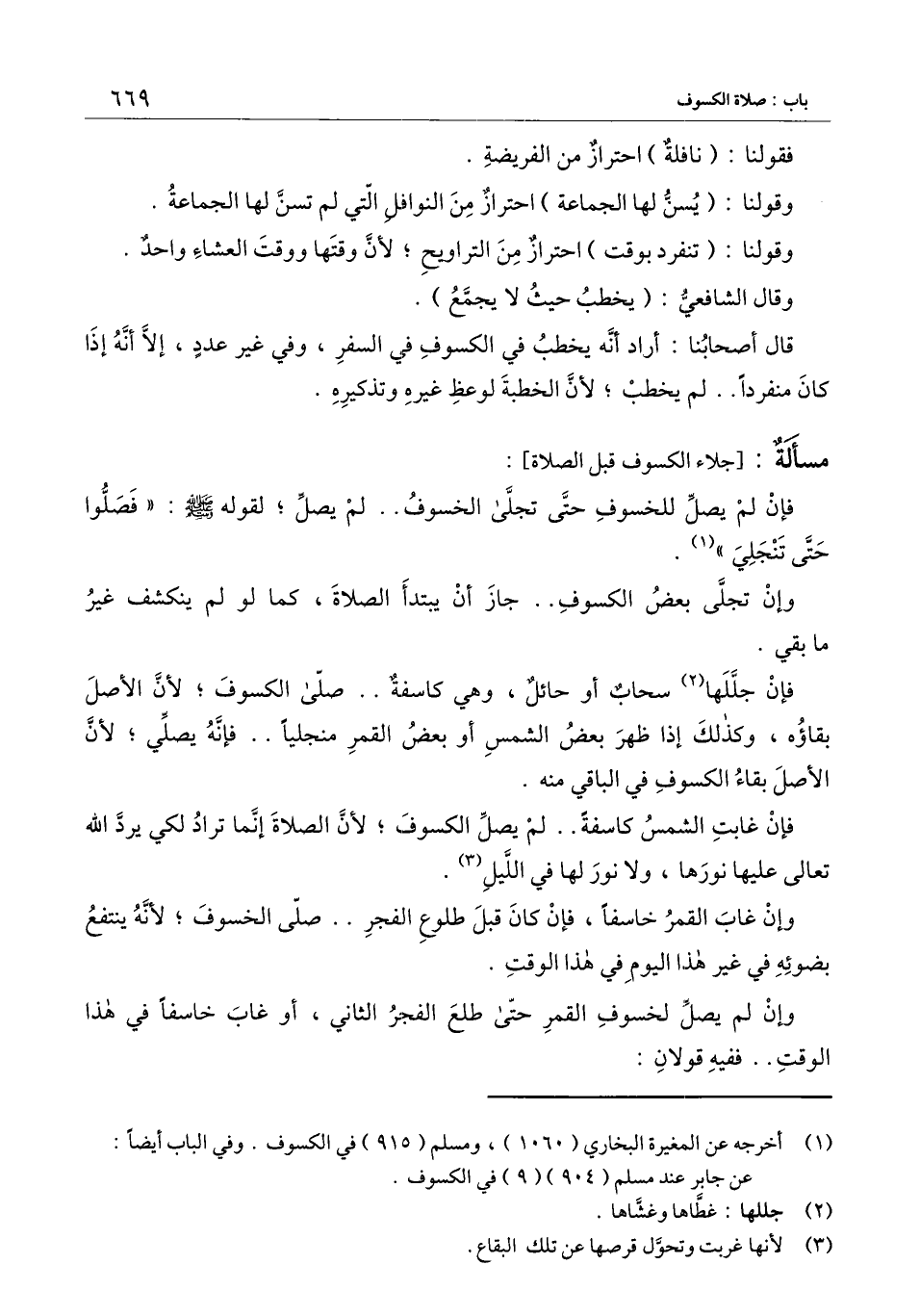 قال أصحابنا: أراد أنه يخطب في الكسوف في السفر، وفي غير عددٍ، إلا أنه إذا كان منفردًا ... لم يخطب؛ لأن الخطبة لوعظ غيره وتذكيره.