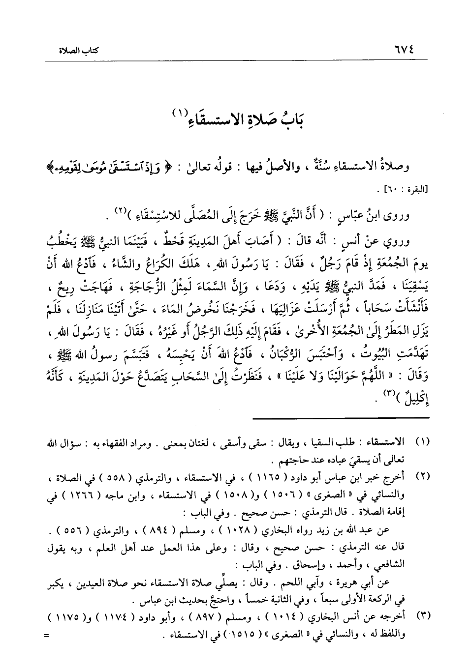 وصلاة الاستسقاء سُنَّة، والأصل فيها: قَوْله تَعَالَى: {وَإِذِ اسْتَسْقَى مُوسَى لِقَوْمِهِ} [البقرة: 60] [البقرة: 60] .