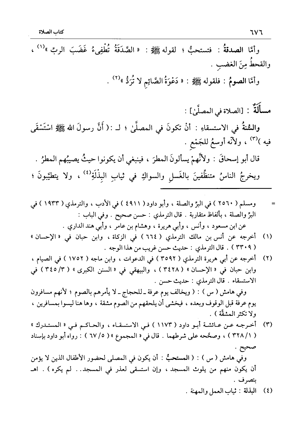 وأما الصدقة: فتستحب؛ لقوله - صَلَّى اللَّهُ عَلَيْهِ وَسَلَّمَ -: «الصدقة تطفئ غضب الرب» ، والقحط من الغضب.