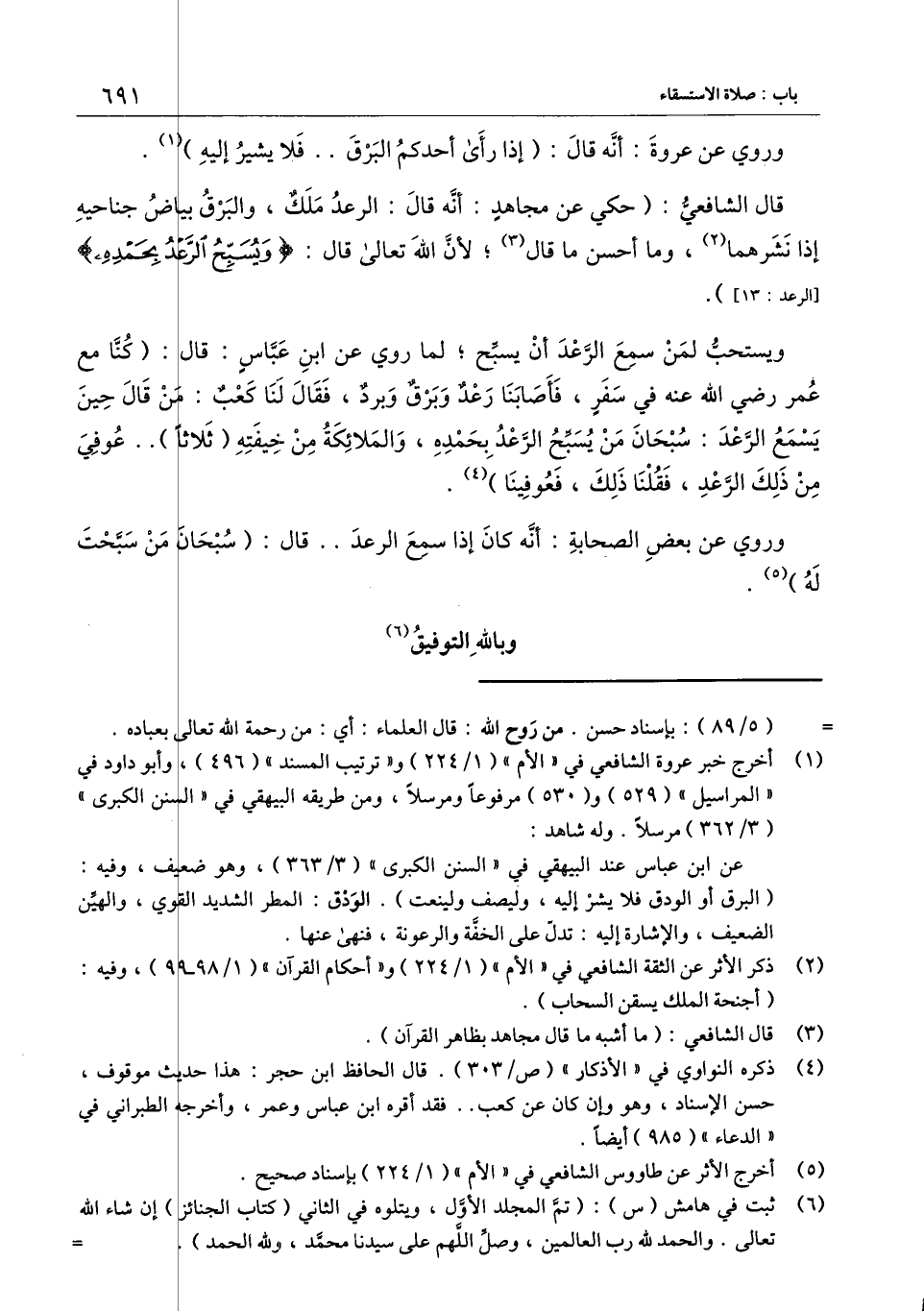 قال الشافعي: (حكي عن مجاهد، أنه قال: الرعد ملك، والبرق بياض جناحيه إذا نشرهما، وما أحسن ما قال؛ لأن الله تعالى قال: {وَيُسَبِّحُ الرَّعْدُ بِحَمْدِهِ} [الرعد: 13] [الرعد: 13] .