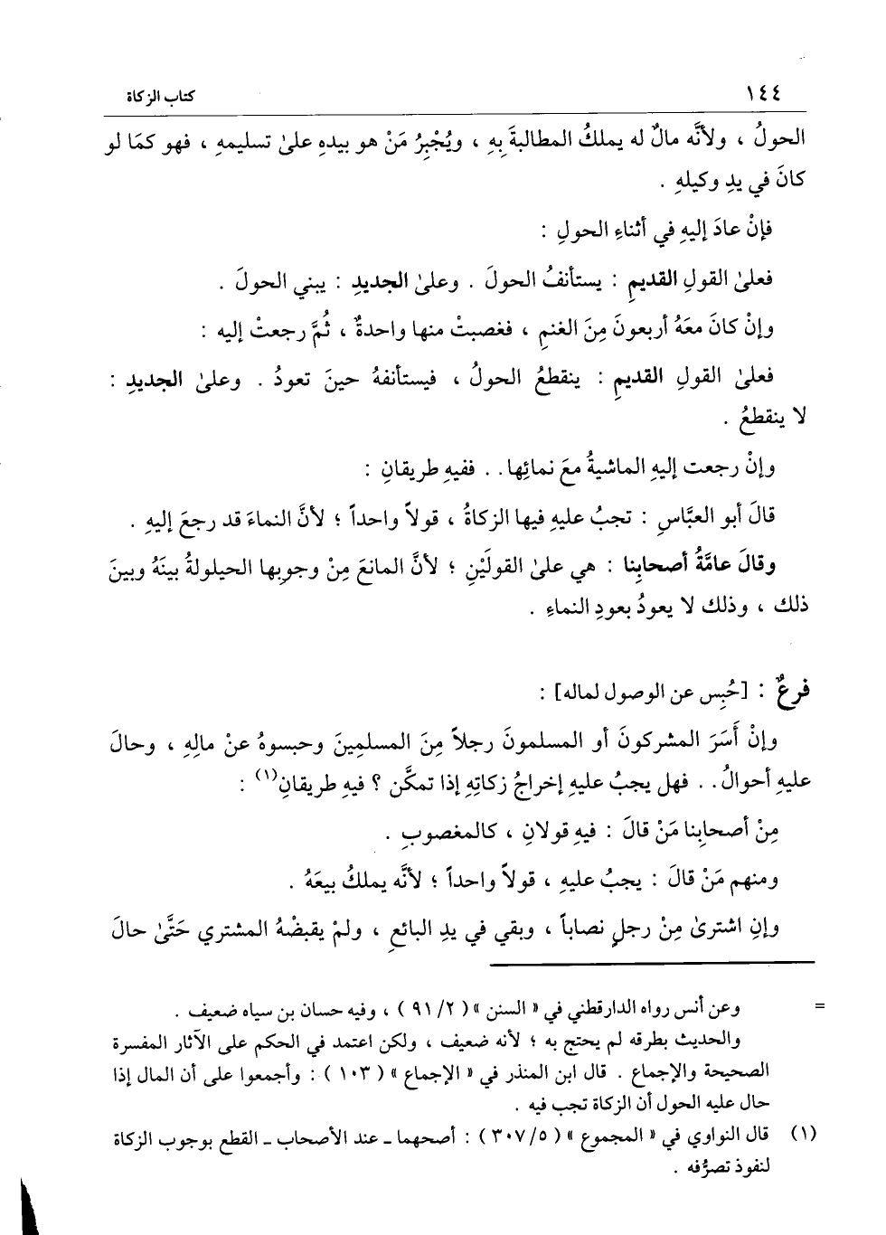 الحول، ولأنه مال له يملك المطالبة به، ويجبر من هو بيده على تسليمه، فهو كما لو كان في يد وكيله.