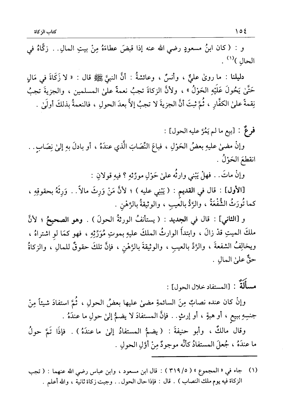 و: (كان ابن مسعود - رَضِيَ اللَّهُ عَنْهُ - إذا قبض عطاءه من بيت المال.. زكاه في الحال) .
