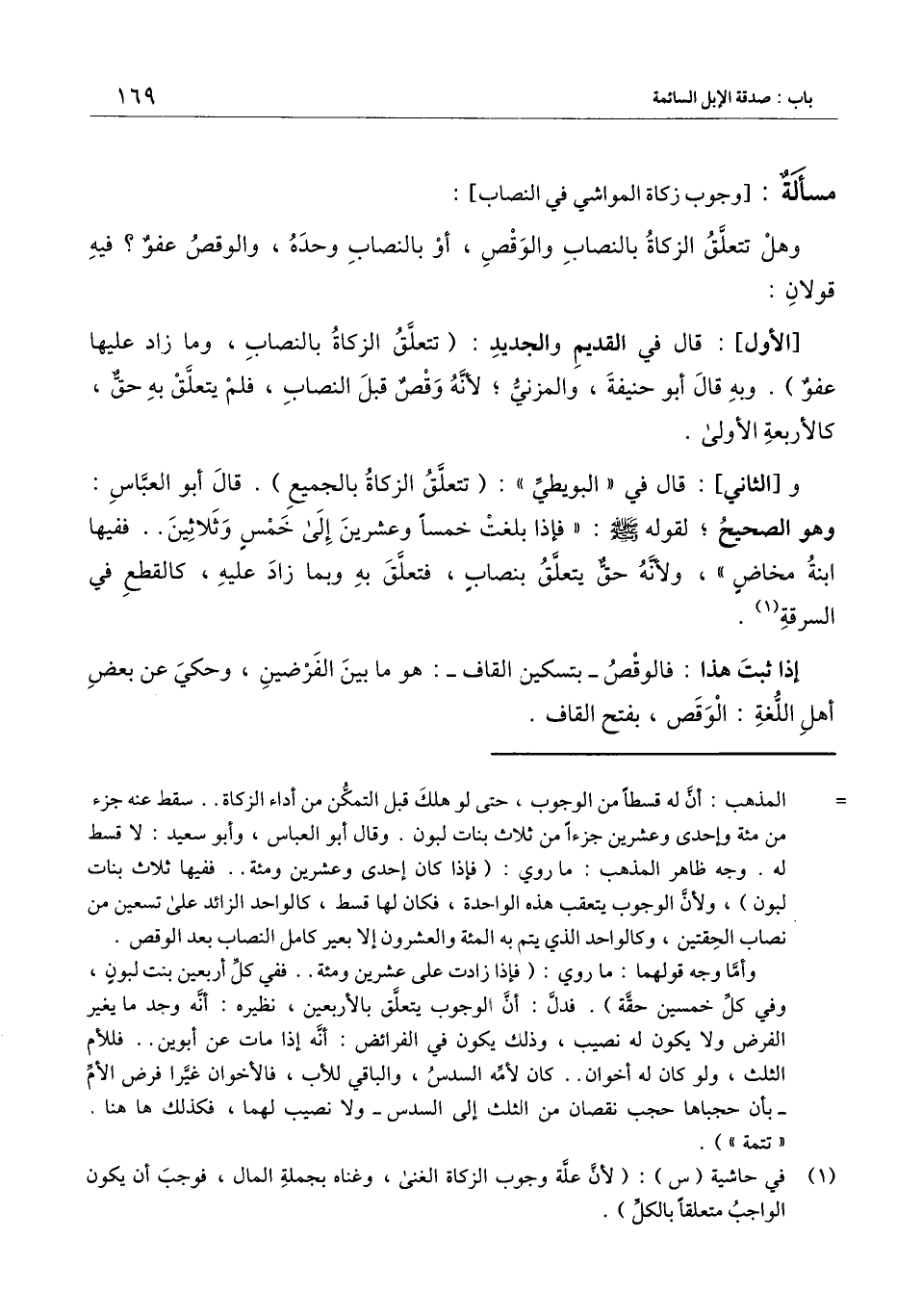 ] : وهل تتعلق الزكاة بالنصاب والوقص، أو بالنصاب وحده، والوقص عفو؟ فيه قولان: