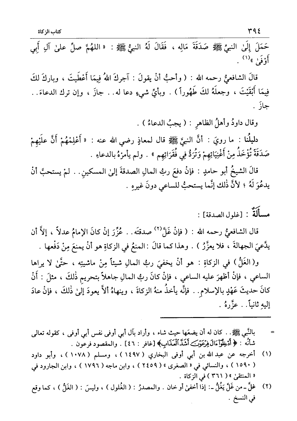 دليلنا: ما روي عن النبي - صَلَّى اللَّهُ عَلَيْهِ وَسَلَّمَ - أنه قال لمعاذ - رَضِيَ اللَّهُ عَنْهُ -: «أعلمهم أن عليهم صدقة تؤخذ من أغنيائهم وترد في فقرائهم» . ولم يأمره بالدعاء.
