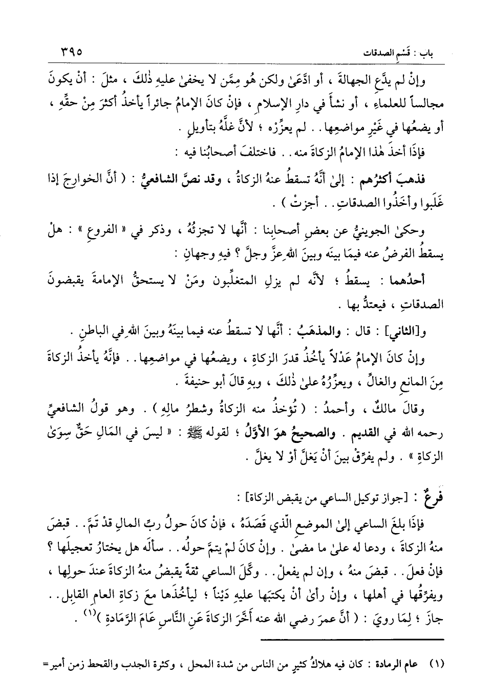 وإن كان الإمام عدلا يأخذ قدر الزكاة، ويضعها في مواضعها.. فإنه يأخذ الزكاة من المانع والغال ويعذره على ذلك، وبه قال أبو حنيفة.