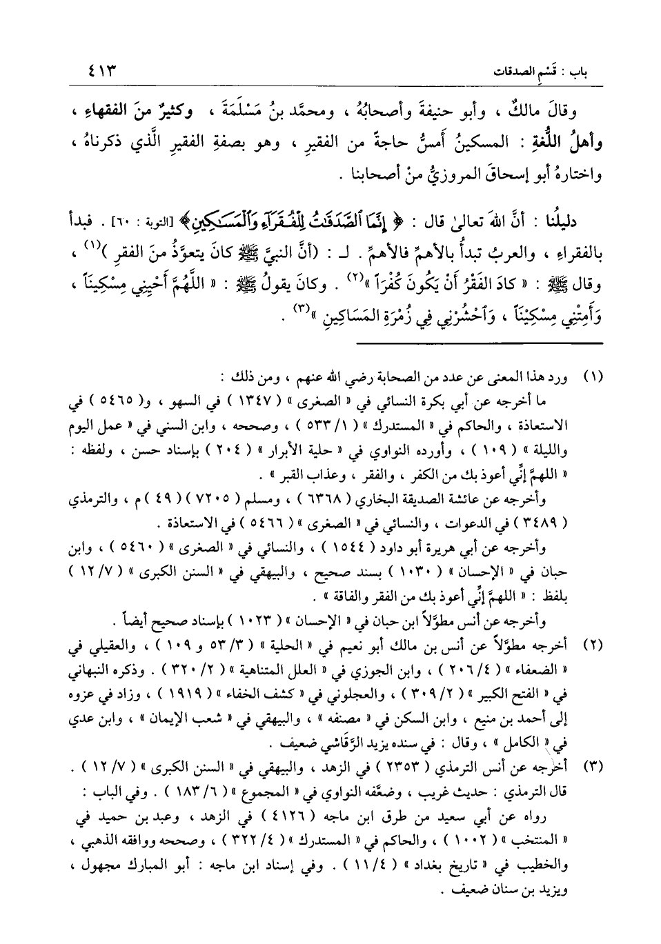 دليلنا: أن الله تعالى قال: {إِنَّمَا الصَّدَقَاتُ لِلْفُقَرَاءِ وَالْمَسَاكِينِ} [التوبة: 60] [التوبة: 60] . فبدأ بالفقراء، والعرب تبدأ بالأهم فالأهم. لـ: «أن النبي - صَلَّى اللَّهُ عَلَيْهِ وَسَلَّمَ - كان يتعوذ من الفقر» ، وقال - صَلَّى اللَّهُ عَلَيْهِ وَسَلَّمَ - «كاد الفقر أن يكون كفرا» . وكان يقول - صَلَّى اللَّهُ عَلَيْهِ وَسَلَّمَ -: «اللهم أحيني مسكينا، وأمتني مسكينا، واحشرني في زمرة المساكين» .
