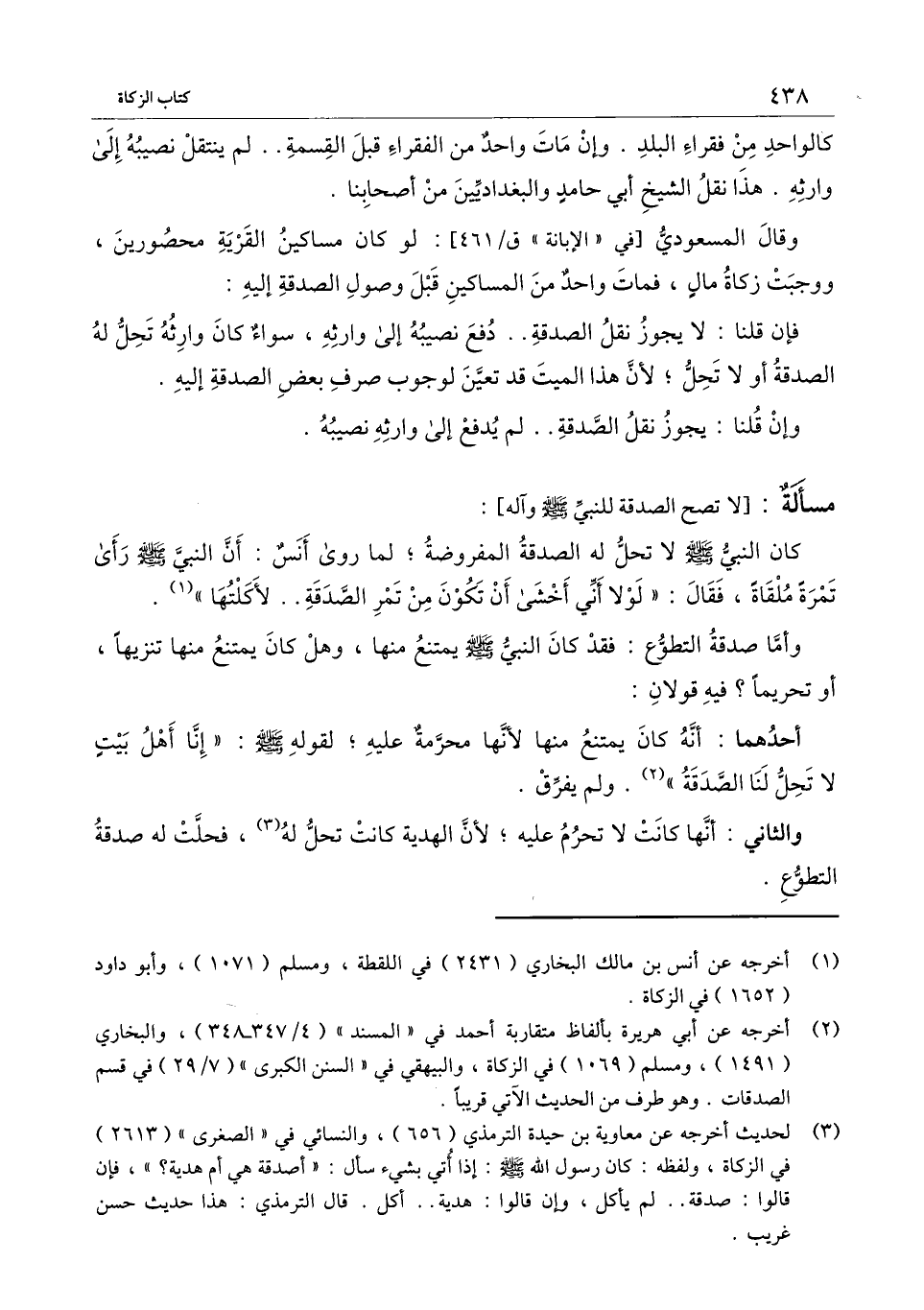 - صَلَّى اللَّهُ عَلَيْهِ وَسَلَّمَ - وآله] : كان النبي - صَلَّى اللَّهُ عَلَيْهِ وَسَلَّمَ - لا تحل له الصدقة المفروضة؛ لما روى أنس: «أن النبي - صَلَّى اللَّهُ عَلَيْهِ وَسَلَّمَ - رأى تمرة ملقاة، فقال: " لولا أني أخشى أن تكون من تمر الصدقة.. لأكلتها» .