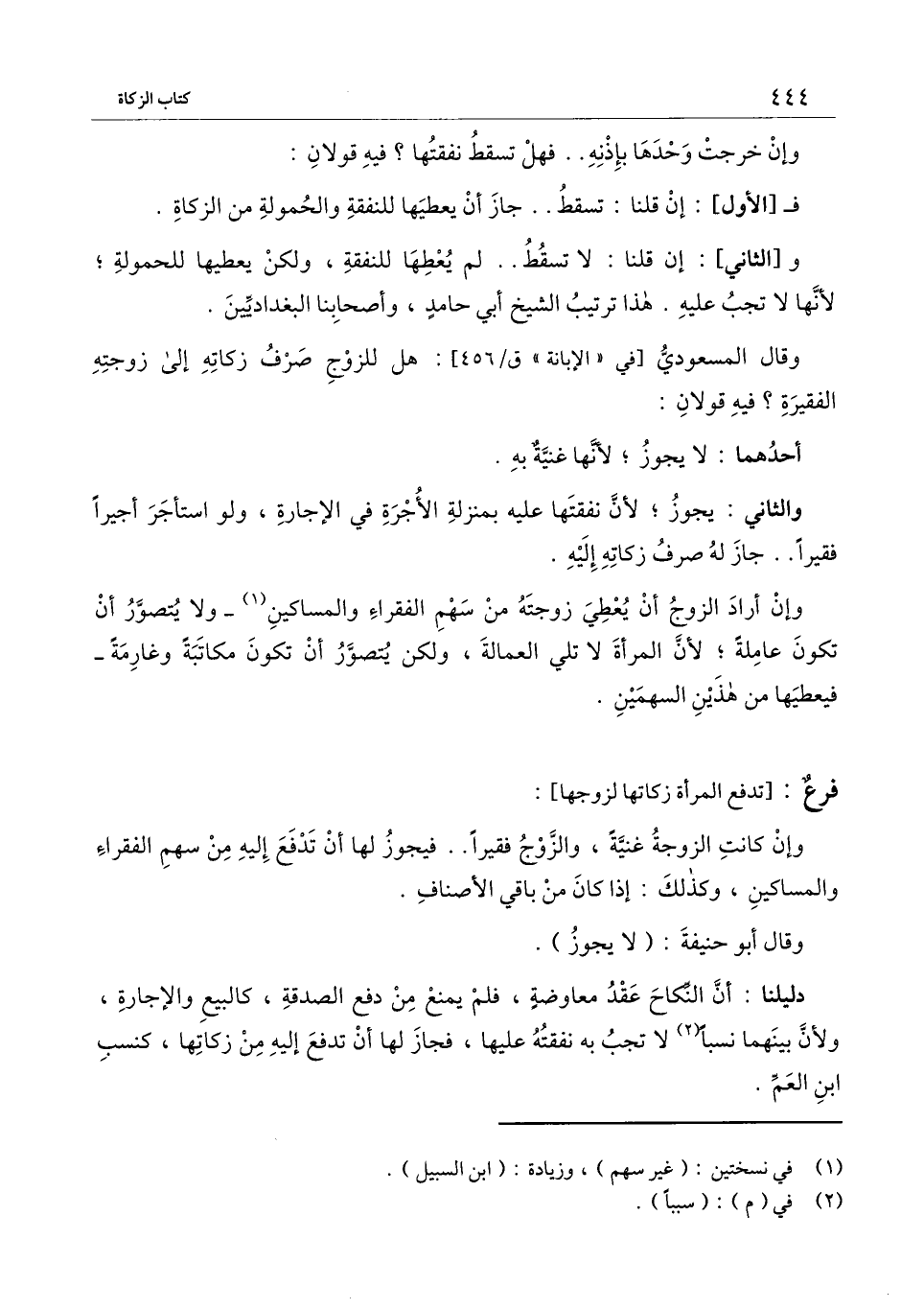 وقال المسعودي [في " الإبانة " ق\ 456] هل للزوج صرف زكاته إلى زوجته الفقيرة؟ فيه قولان: