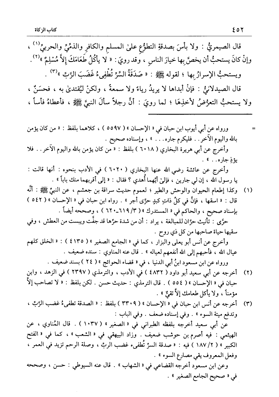 قال الصيمري: ولا بأس بصدقة التطوع على المسلم والكافر والذمي والحربي، وإن كان يستحب أن يخص بها خيار الناس، وقد روي: «لا يأكل طعامك إلا مسلم» . ويستحب الإسرار بها؛ لقوله - صَلَّى اللَّهُ عَلَيْهِ وَسَلَّمَ -: «صدقة السر تطفئ غضب الرب» .