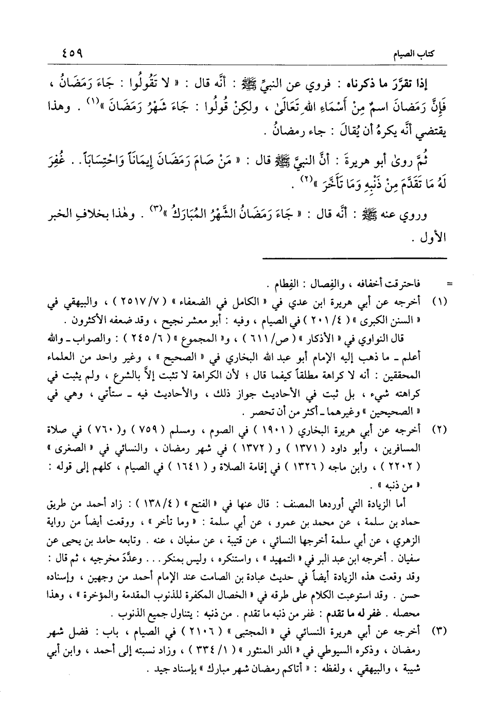 ثم روى أبو هريرة: أن النبي - صَلَّى اللَّهُ عَلَيْهِ وَسَلَّمَ - قال: «من صام رمضان إيمانًا واحتسابًا.. غفر له ما تقدم من ذنبه وما تأخر» .