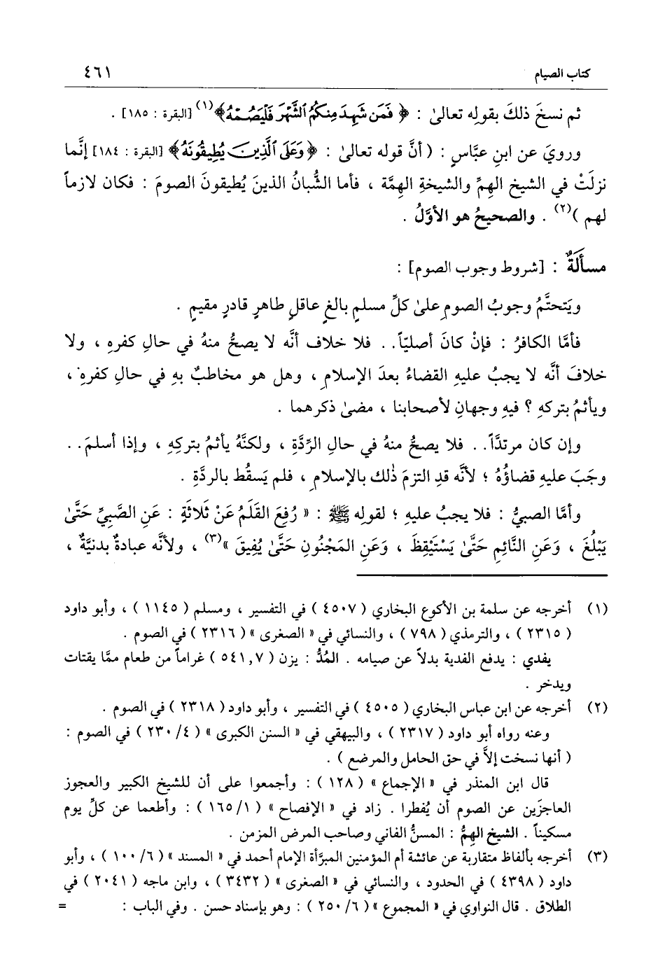 ] : ويتحتم وجوب الصوم على كل مسلم بالغ عاقل طاهرٍ قادر مقيم.