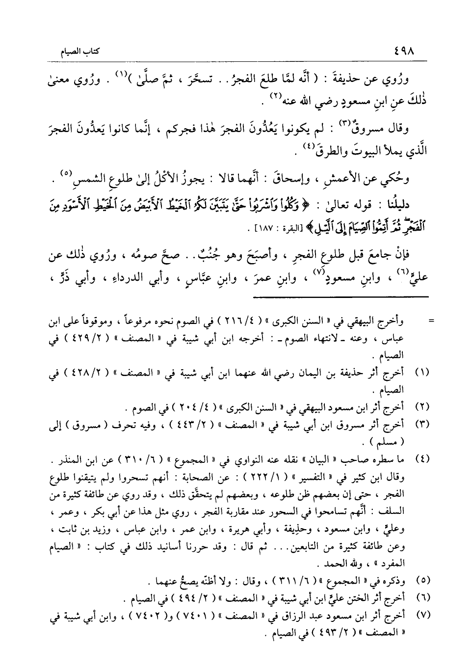 وقال مسروق: لم يكونوا يعدون الفجر هذا فجركم، إنما كانوا يعدون الفجر الذي يملأ البيوت والطرق.
