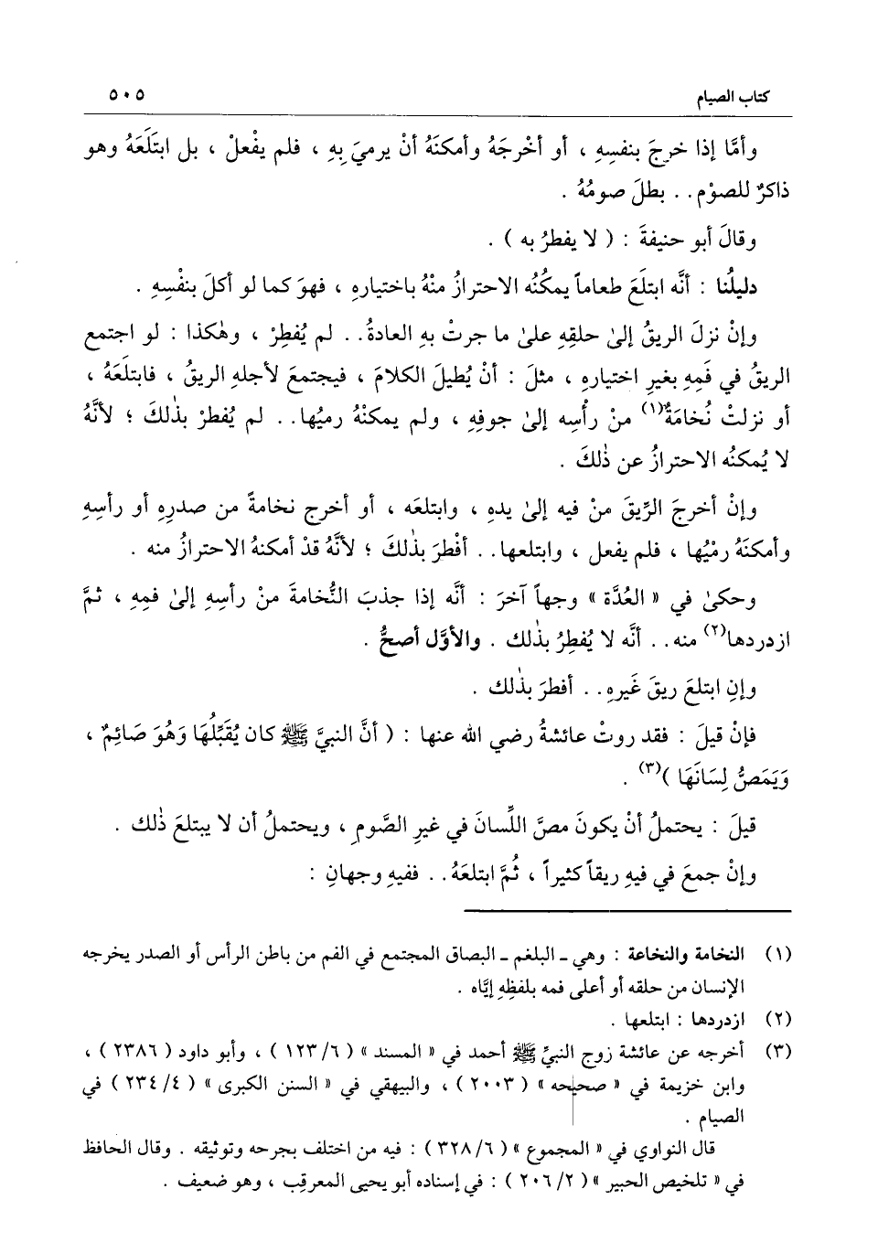 وإن نزل الريق إلى حلقه على ما جرت به العادة.. لم يفطر، وهكذا: لو اجتمع الريق في فمه بغير اختياره، مثل: أن يطيل الكلام، فيجتمع لأجله الريق، فابتلعه، أو نزلت نخامة من رأسه إلى جوفه، ولم يمكنه رميها.. لم يفطر بذلك؛ لأنه لا يمكنه الاحتراز عن ذلك.