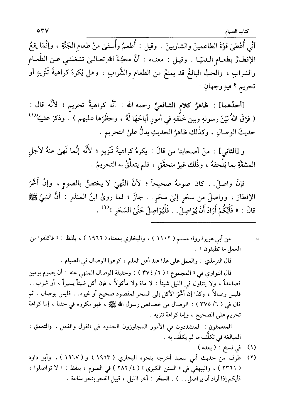 [أحدهما] : ظاهر كلام الشافعي - رَحِمَهُ اللَّهُ -: أنه كراهية تحريم؛ لأنه قال: (فرق الله بين رسوله وبين خلقه في أمور أباحها له، وحظرها عليهم) . وذكر عقيبه حديث الوصال، وكذلك ظاهر الحديث يدل على التحريم.