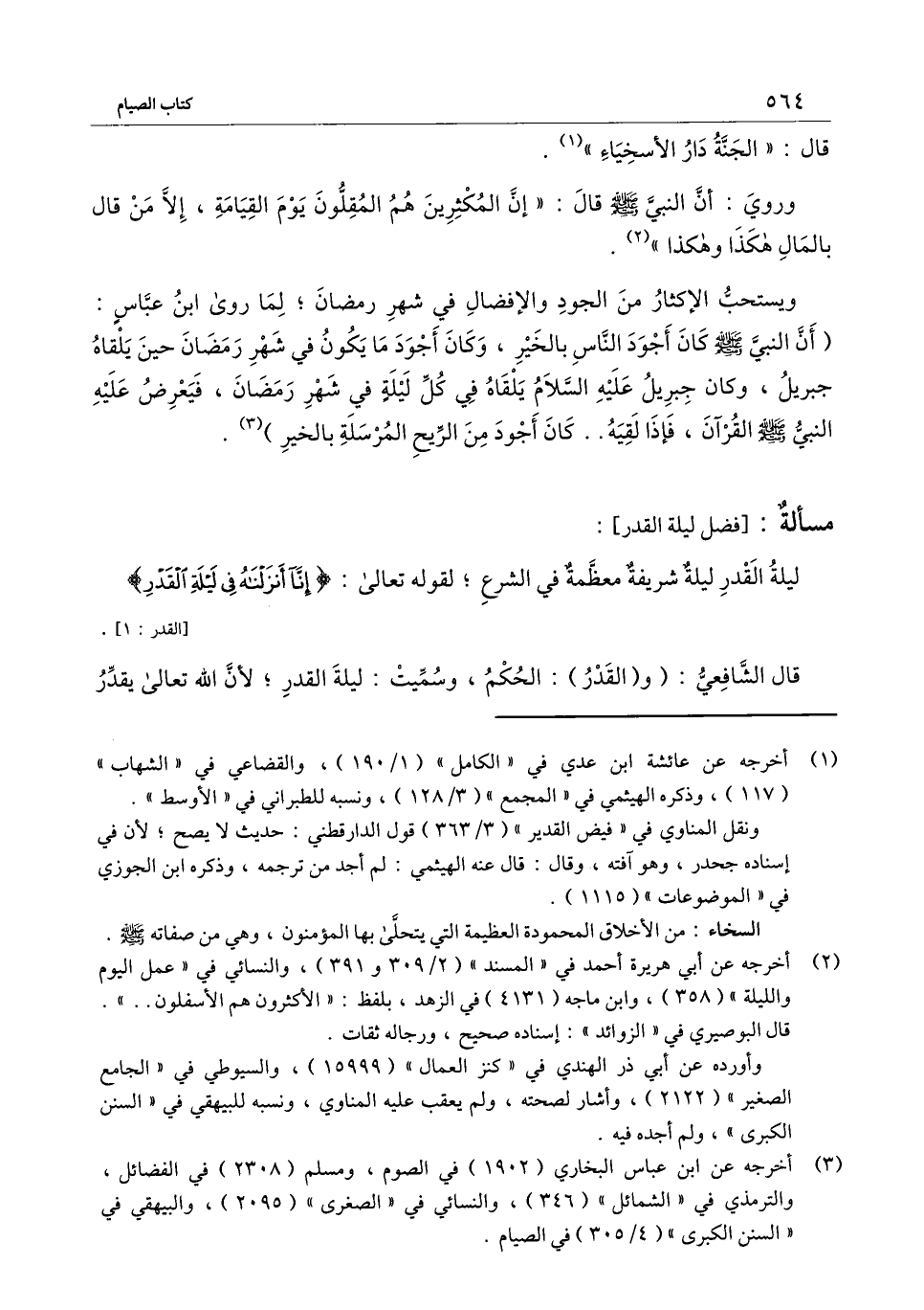 ويستحب الإكثار من الجود والإفضال في شهر رمضان لما روى ابن عباس «أن النبي - صَلَّى اللَّهُ عَلَيْهِ وَسَلَّمَ - كان أجود الناس بالخير، وكان أجود ما يكون في شهر رمضان حين يلقاه جبريل، وكان جبريل - عَلَيْهِ السَّلَامُ - يلقاه في كل ليلة في شهر رمضان، فيعرض عليه النبي - صَلَّى اللَّهُ عَلَيْهِ وَسَلَّمَ - القرآن، فإذا لقيه.. كان أجود من الريح المرسلة بالخير»