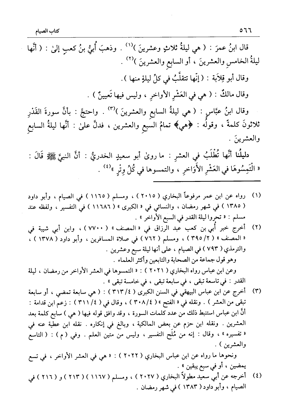 قال ابن عمر: (هي ليلة ثلاث وعشرين) . وذهب أبي بن كعب إلى: (أنها ليلة الخامس والعشرين، أو السابع والعشرين)
