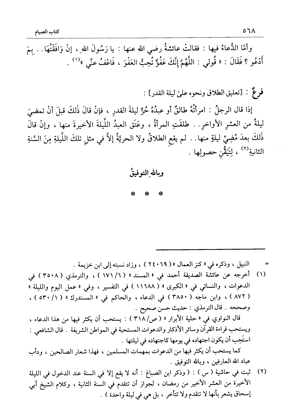 ] : إذا قال الرجل: امرأته طالق أو عبده حر ليلة القدر، فإن قال ذلك قبل أن تمضي ليلة من العشر الأواخر.. طلقت المرأة، وعتق العبد الليلة الأخيرة منها، وإن قال ذلك بعد مضي ليلة منها ... لم يقع الطلاق ولا الحرية إلا في مثل تلك الليلة من السنة الثانية، لتيقن حصولها.
