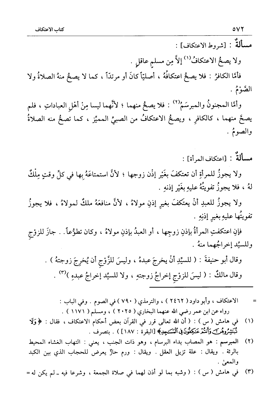 ولا يصح الاعتكاف إلا من مسلم عاقل.