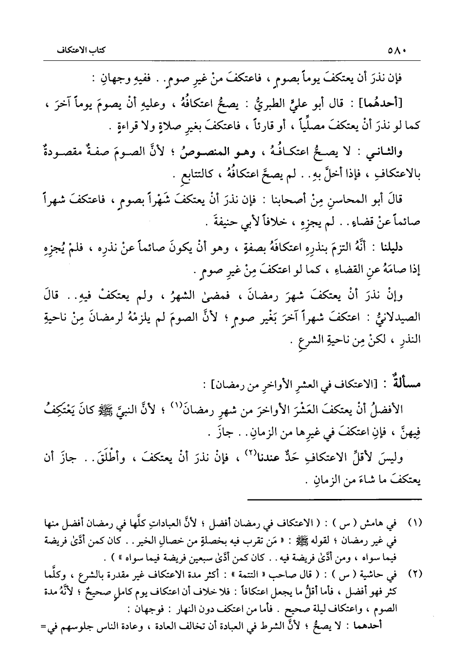 [مسألة: الاعتكاف في العشر الأواخر من رمضان]
