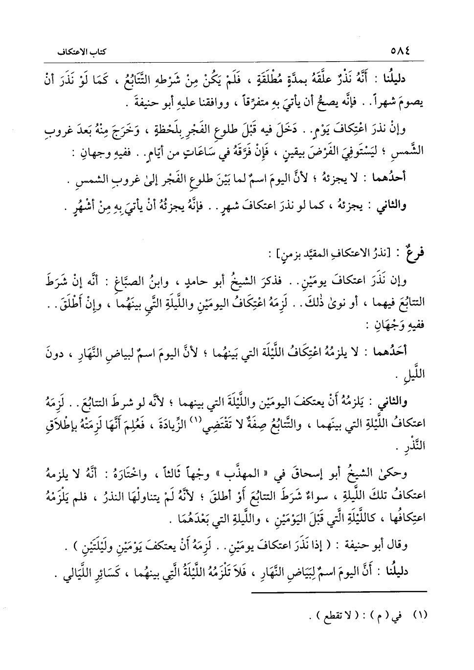 [فرع: نذر الاعتكاف المقيد بزمن]