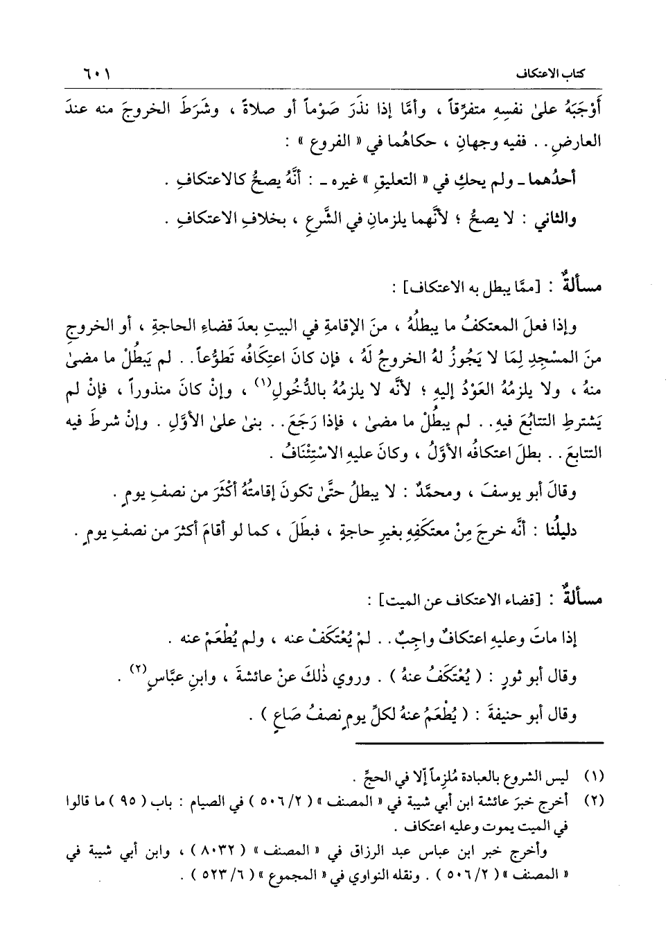 ] : وإذا فعل المعتكف ما يبطله، من الإقامة في البيت بعد قضاء الحاجة، أو الخروج من المسجد لما لا يجوز له الخروج له، فإن كان اعتكافه تطوعا.. لم يبطل ما مضى منه، ولا يلزمه العود إليه؛ لأنه لا يلزمه بالدخول، وإن كان منذورا، فإن لم يشترط التتابع فيه.. لم يبطل ما مضى، فإذا رجع.. بنى على الأول. وإن شرط فيه التتابع.. بطل اعتكافه الأول، وكان عليه الاستئناف.