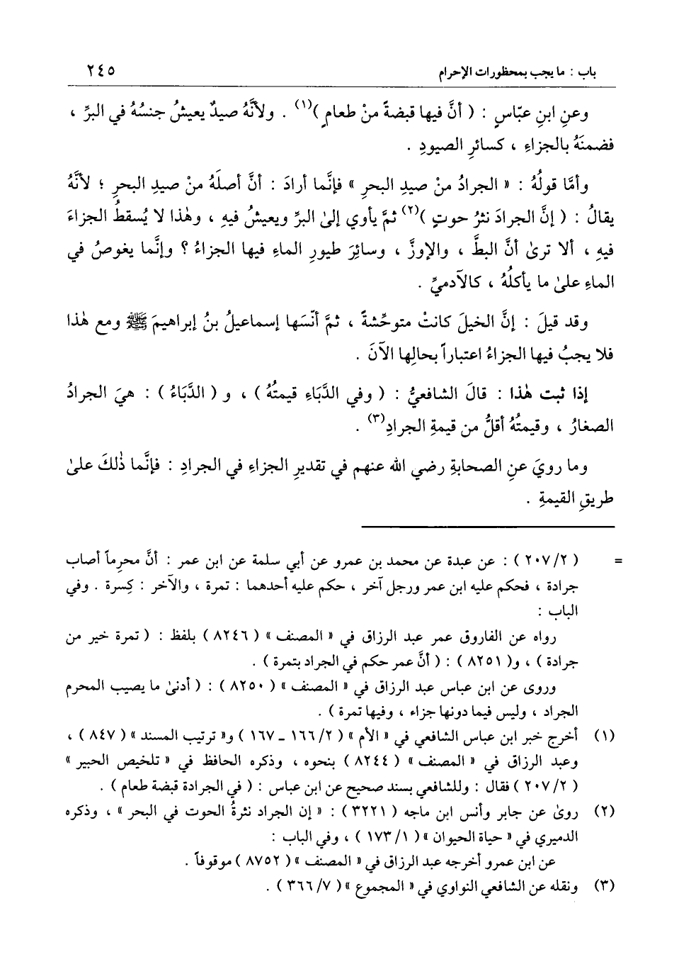 وما روي عن الصحابة - رَضِيَ اللَّهُ عَنْهُمْ - في تقدير الجزاء في الجراد: فإنما ذلك على طريق القيمة.