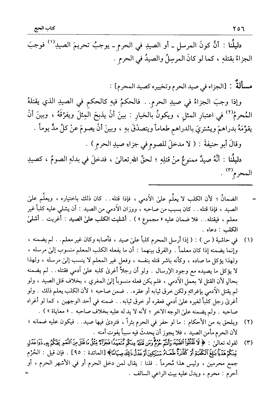 وإذا وجب الجزاء في صيد الحرم.. فالحكم فيه كالحكم في الصيد الذي يقتله المحرم في اعتبار المثل، ويكون بالخيار: بين أن يذبح المثل ويفرقه، وبين أن يقومه بدراهم ويشتري بالدراهم طعاما ويتصدق به، وبين أن يصوم عن كل مد يوما.